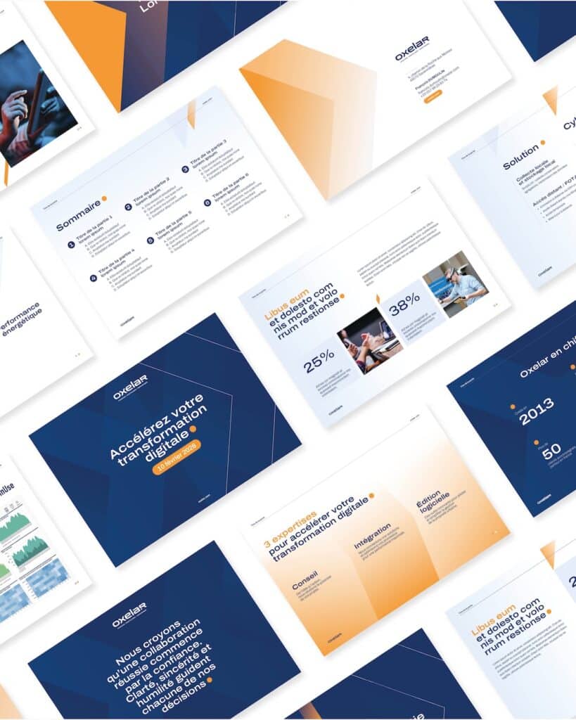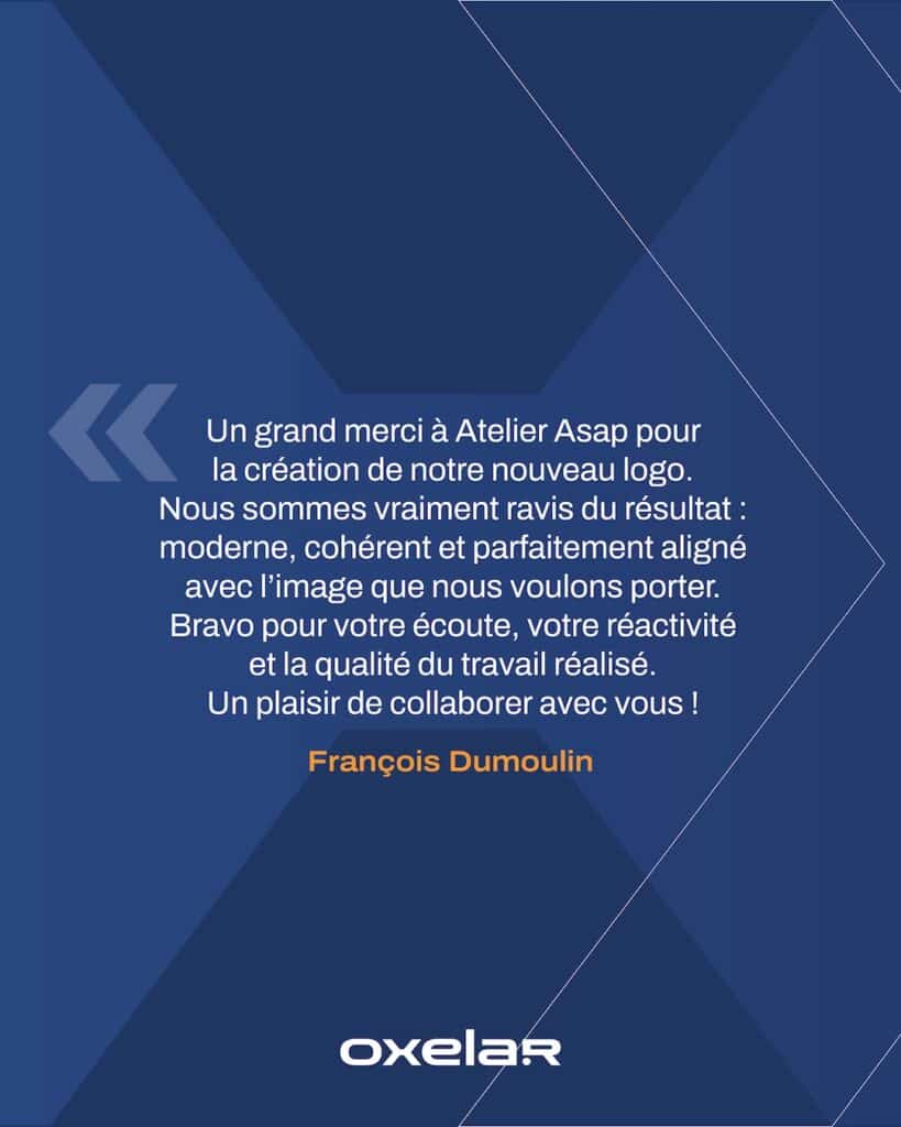 Au cœur de cette évolution, un travail sur le “X” de Oxelar, transformé en flèche, pour incarner la direction, la projection et la transformation. Au-delà du design, l’objectif était surtout de structurer la prise de parole en ayant des supports clairs et cohérents.